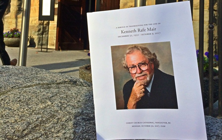 Mair’s portrait was displayed on an altar under a vase of roses at Vancouver’s Christ Church Cathedral, where a bagpiper played to welcome attendees ahead of heartfelt eulogies from friends and family.