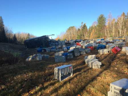Officers in Blackville, N.B., responded to an overturned transport truck on Highway 8 at 2 a.m. on Oct. 31.