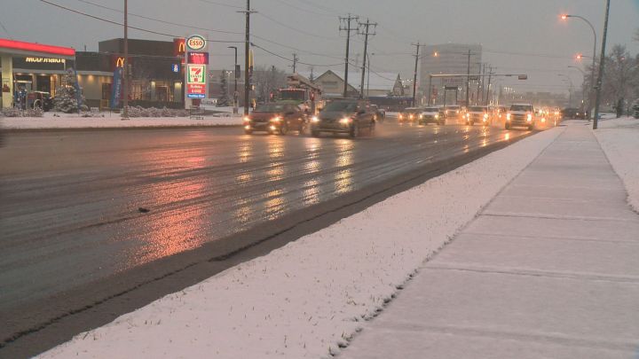 The City of Edmonton said about 38 sanders and five plows were sanding and clearing the roads as needed. The full fleet of equipment — about 150 pieces — doesn’t come out until after three centimetres of snow has fallen.