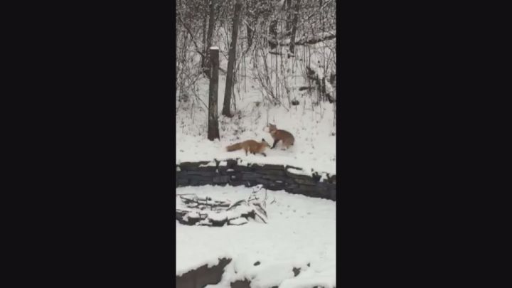 But a pair of foxes seemed to find their suddenly white surroundings to be a whole lot of fun on Tuesday.