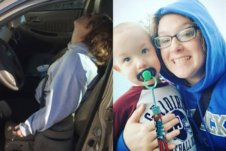 The image, which was widely shared by Indiana police in October 2016, showed Hurt passed out in her car from a heroin overdose, while her son Parker was in the backseat.