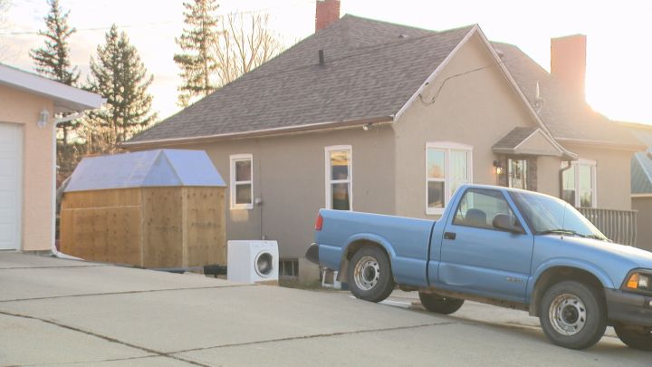 Global News spoke to Negrych’s lawyer, police and several government officials about the issue and it appears that there is no law allowing Cox to live on the driveway, but only a judge can have him removed.