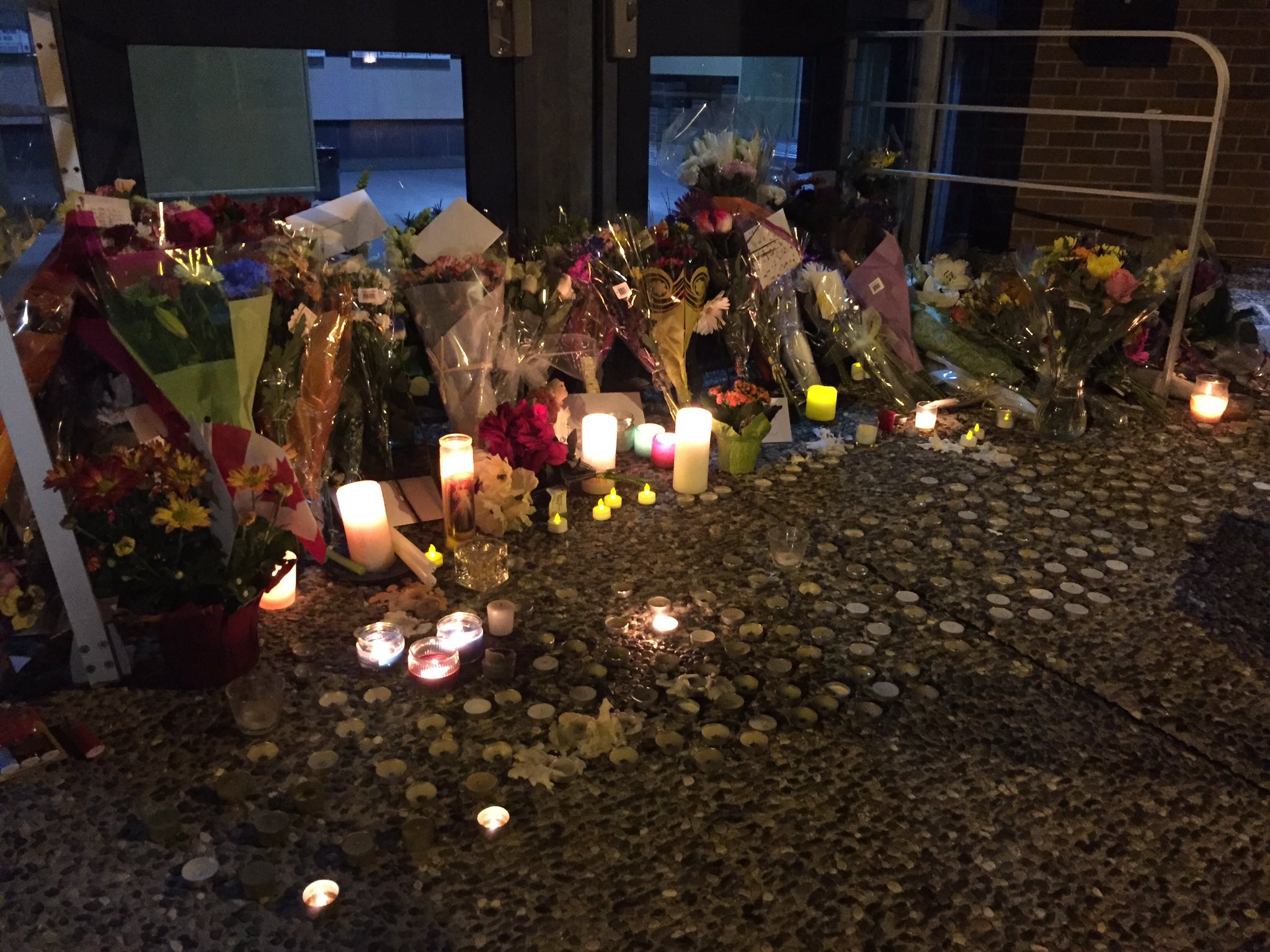 People have been stopping by the Abbotsford Police Detachment since yesterday afternoon to lay flowers, place notes, light candles and pay their respects.