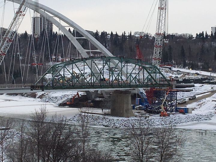 On Wednesday afternoon, the City of Edmonton tweeted the centre truss of the 104-year-old bridge had been removed.