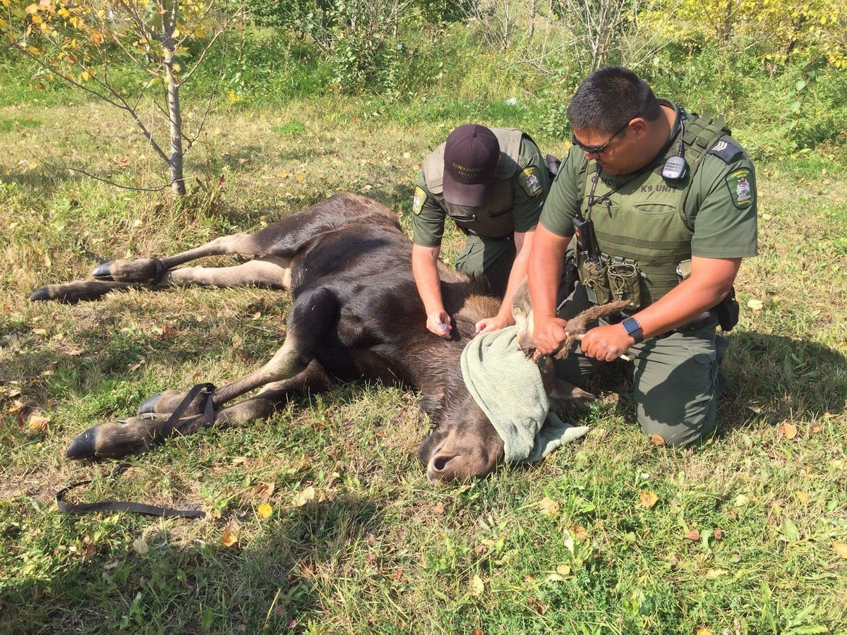 The report said once within range, a conservation officer shot the moose in the back end with a tranquilizer dart. A second shot was fired 10 minutes later – it hit the moose in the shoulder. The animal went down but was still stirring, so a third dose was given. At that time, the animal, which was described as a young bull, appeared to be in good condition. It was given a fourth shot after being loaded into a livestock trailer so that it did not wake up during transport.