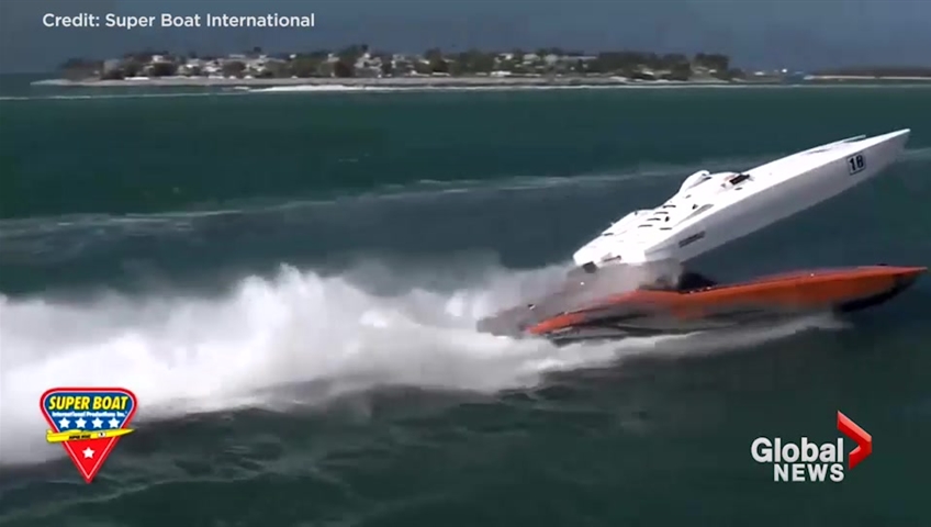 A shocking crash at a powerboat race in Florida was caught on camera Friday, sending one of the fast-moving boats soaring through the air.