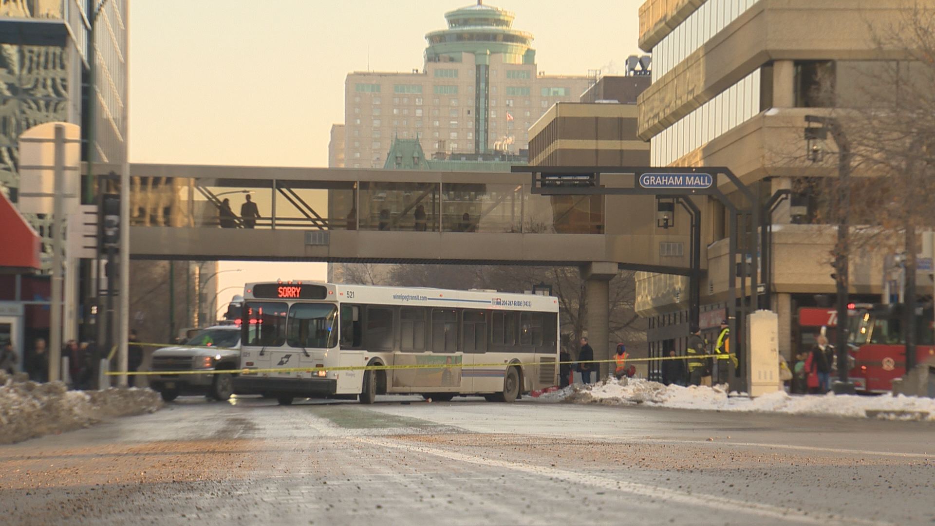 Winnipeg police said the crash happened around 2:30 p.m. when a pedestrian was struck by a bus.