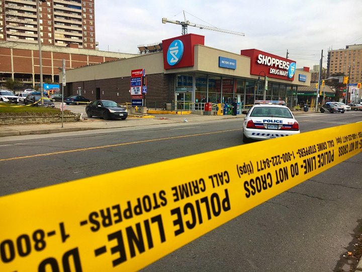 Toronto police said officers responded to multiple calls about a stabbing at a Shoppers Drug Mart near Weston Road and Lawrence Avenue around 11:50 a.m.