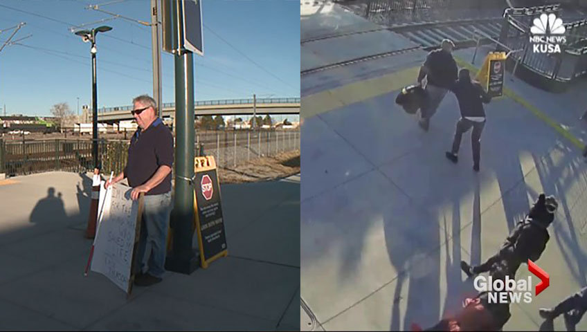 RAW VIDEO: Blind Colorado man pulled from in front of an oncoming train by a fellow bystander