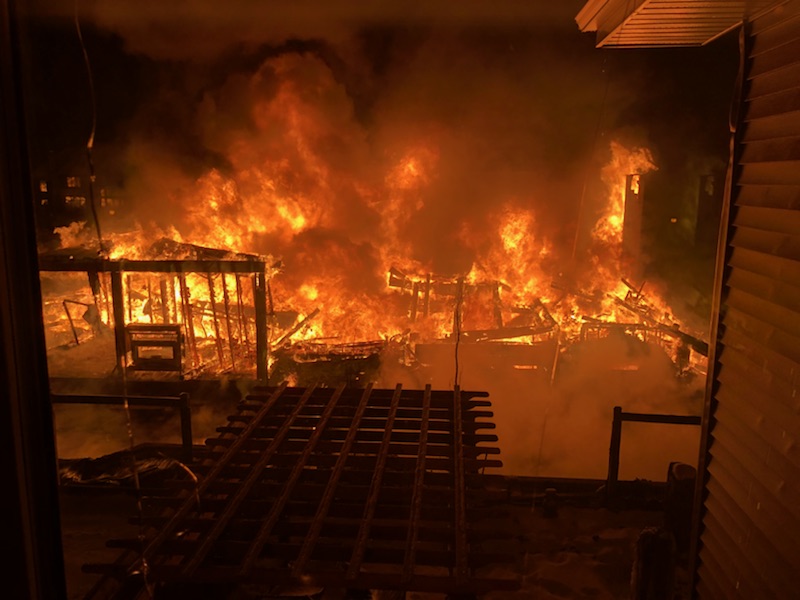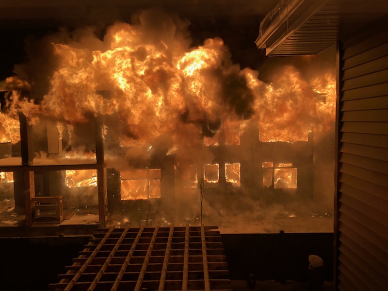 “They got some vinyl damage to the siding on a couple of houses, maybe three houses, and some cracked windows. Fortunately, that was upwind from the fire – the houses that were closest were upwind, not downwind. That helped us out in terms of any exposure damage to the houses next door.”
