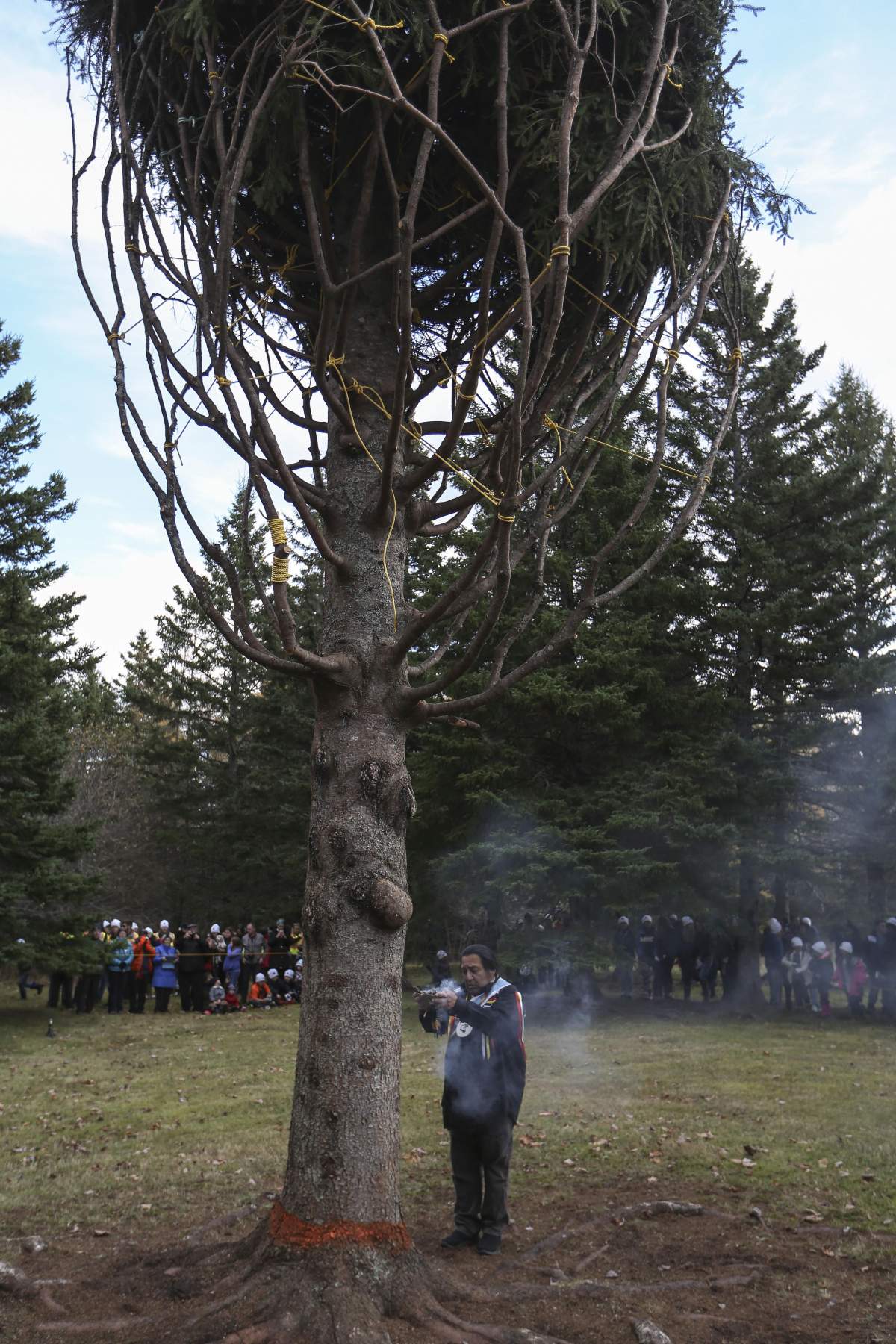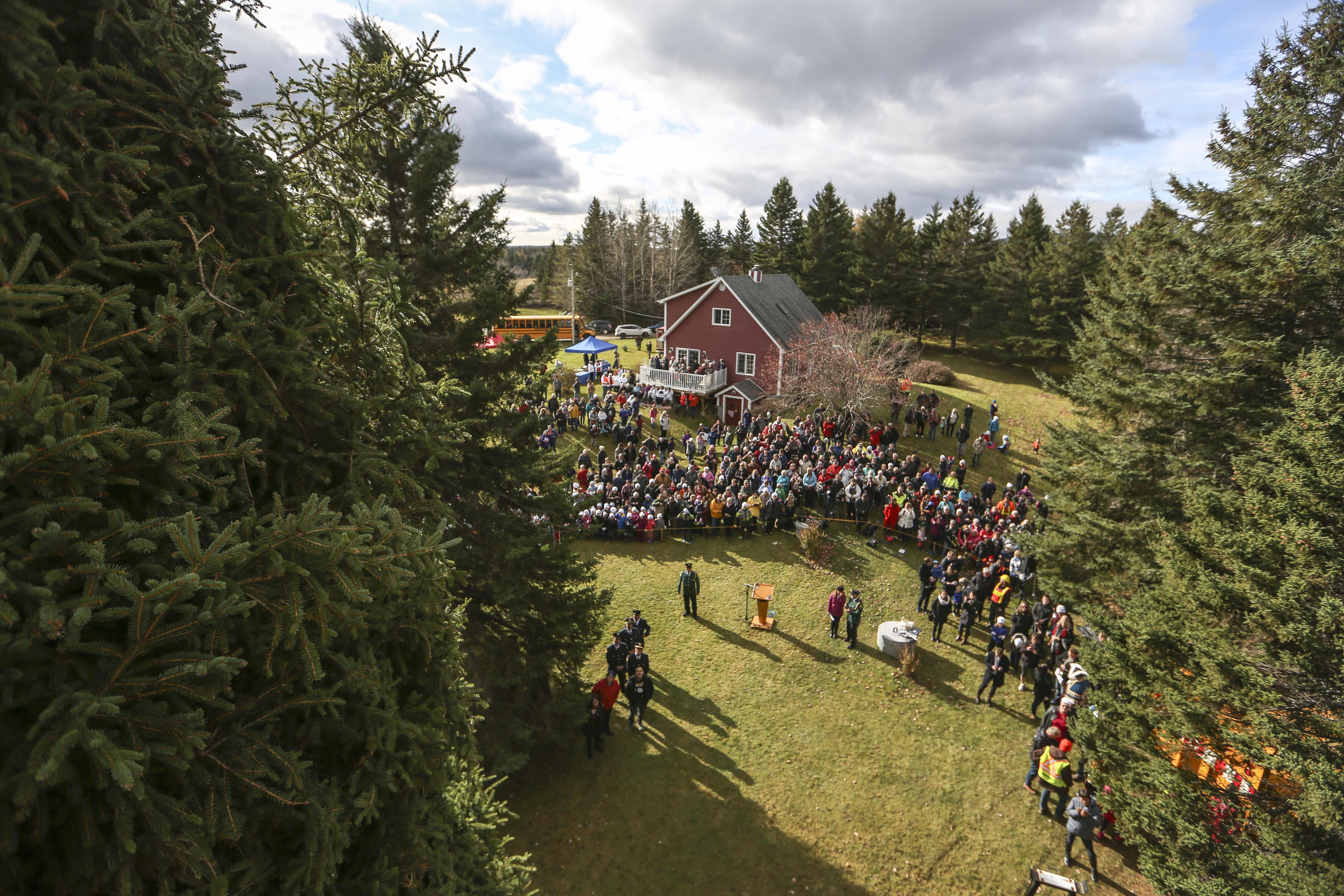 The 100th anniversary tree is a 45-year-old, 16-metre white spruce in Blues Mills, about 38 kilometres from Baddeck in Cape Breton.
