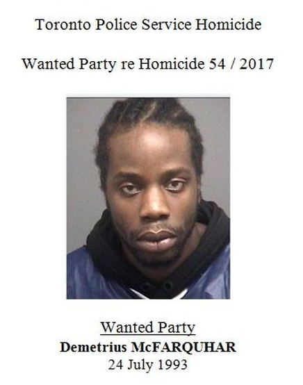 Demetrius McFarquhar, 24, of Toronto, was identified by police on Wednesday evening and is also wanted on charges of attempting to obstruct justice and failing to comply with recognizance.