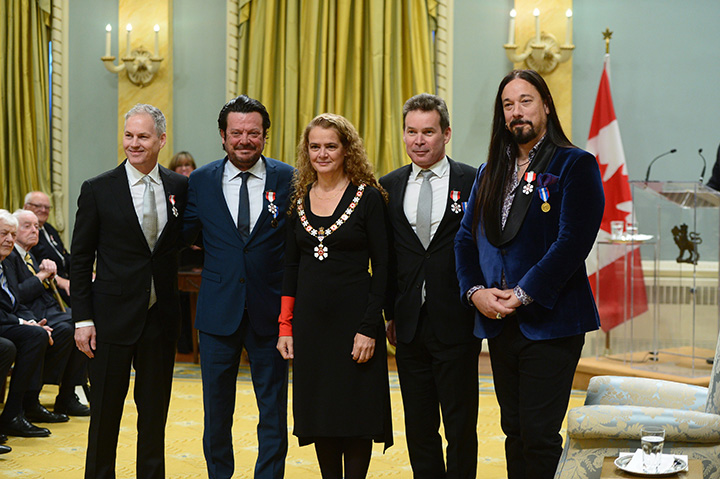 Gov. Gen. Julie Payette presided over the ceremony which saw Hip members Rob Baker, Johnny Fay, Paul Langlois and Gord Sinclair, along Trebek, host of Jeopardy!, receive the country’s highest honour, which recognizes outstanding achievement and service to Canada.