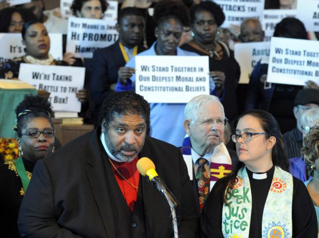 Barber and other speakers claimed Moore’s campaign is fueled by a perversion of Christianity linked with white supremacy, and Moore is trying to take those forces to the Senate.