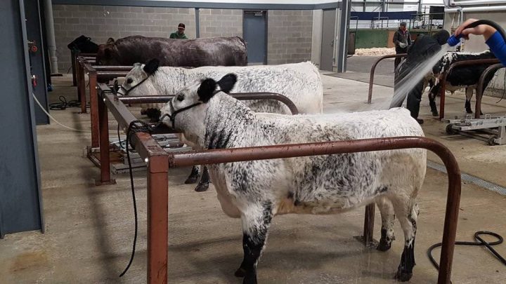 Before the big show begins, the barns are full of ranchers prepping their finest show cattle — showering, blow drying, and brushing their cattle so that each one looks their best.