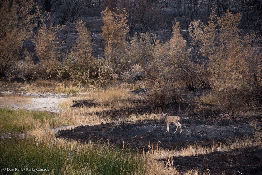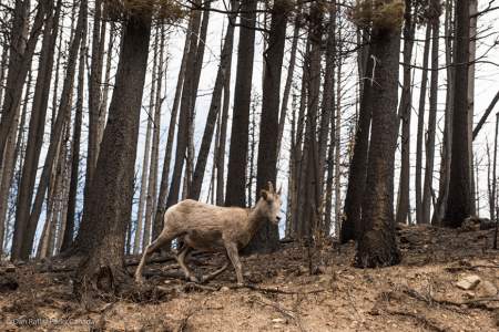 Parks Canada has released a series of photos in hopes of awakening Albertans to how wildlife has been impacted by the Kenow Mountain Wildfire that burned through Waterton Lakes National Park this fall.