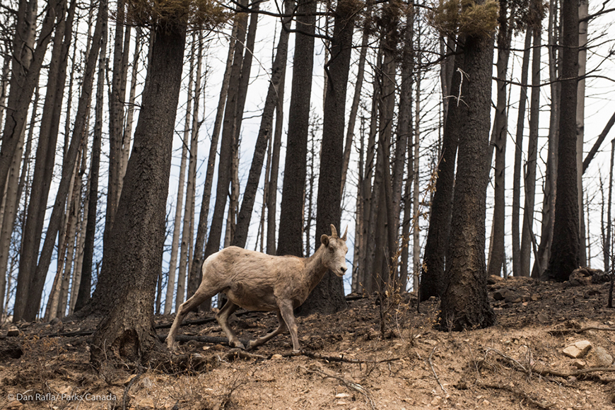 Parks Canada has released a series of photos in hopes of awakening Albertans to how wildlife has been impacted by the Kenow Mountain Wildfire that burned through Waterton Lakes National Park this fall.