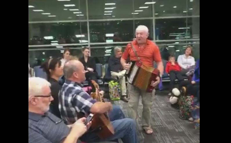 On Tuesday night, a departure gate at Toronto Pearson International Airport turned into an impromptu party when two musicians en route to St. John’s led the waiting passengers in a rousing set of East Coast tunes.
