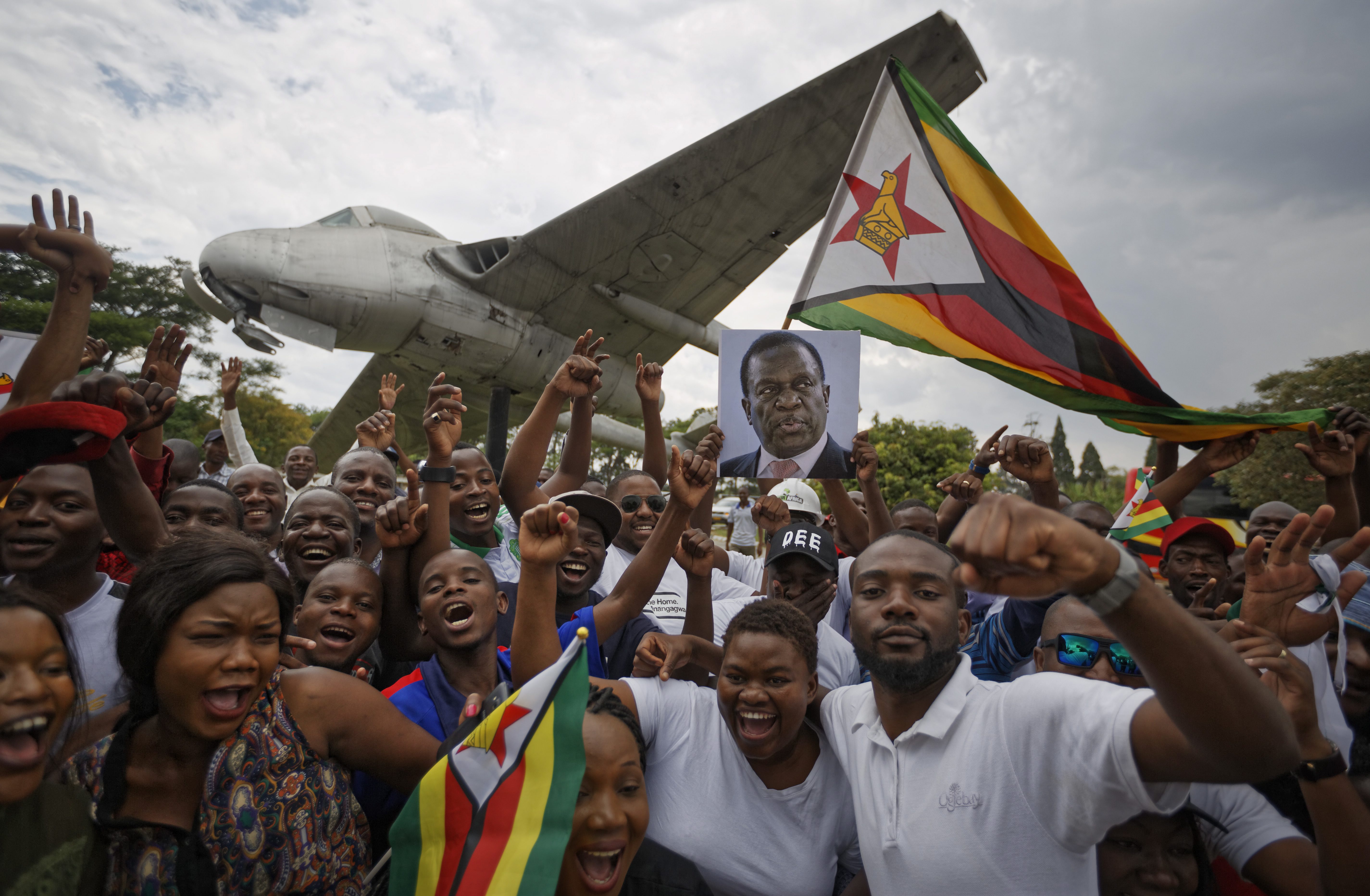 Singing and cheering, several hundred people have gathered outside the air force base in anticipation of Mnangagwa’s arrival.