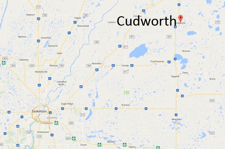 Cudworth is approximately 80 kilometres northeast of Saskatoon.