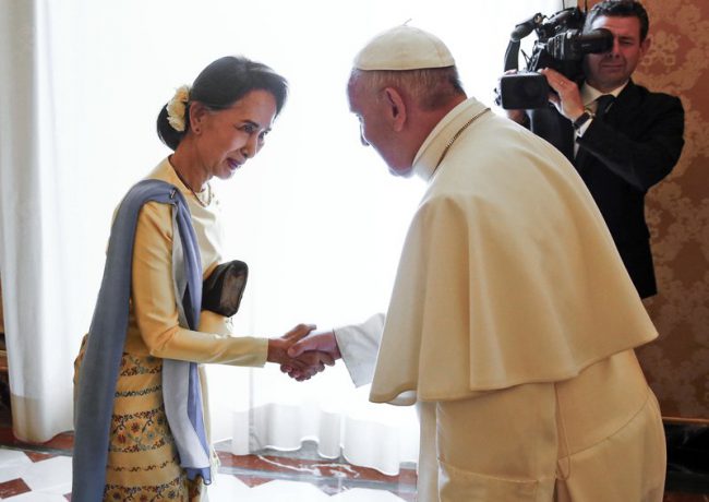 The Rev. Bernardo Cervellera, editor of the AsiaNews news agency that closely covers the Catholic Church in Asia, said he expected Francis would use the visit to help shore up Suu Kyi, whose international stature has suffered as a result of the crisis even though she is limited constitutionally in what she can say or do against the military.
