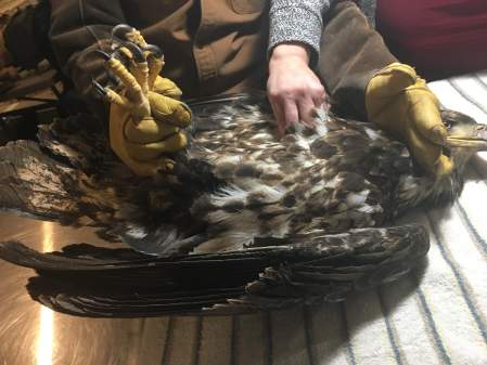 Landsburg says officials have determined the eagle likely received lead contamination by eating a “gut pile” from a possible deer killing.