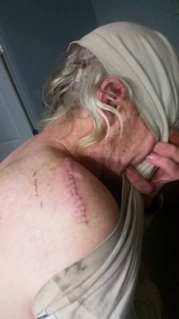 “Aimed for the top of my head and I sort of veered out of his way and he caught me by the shoulder and cut me open pretty badly.