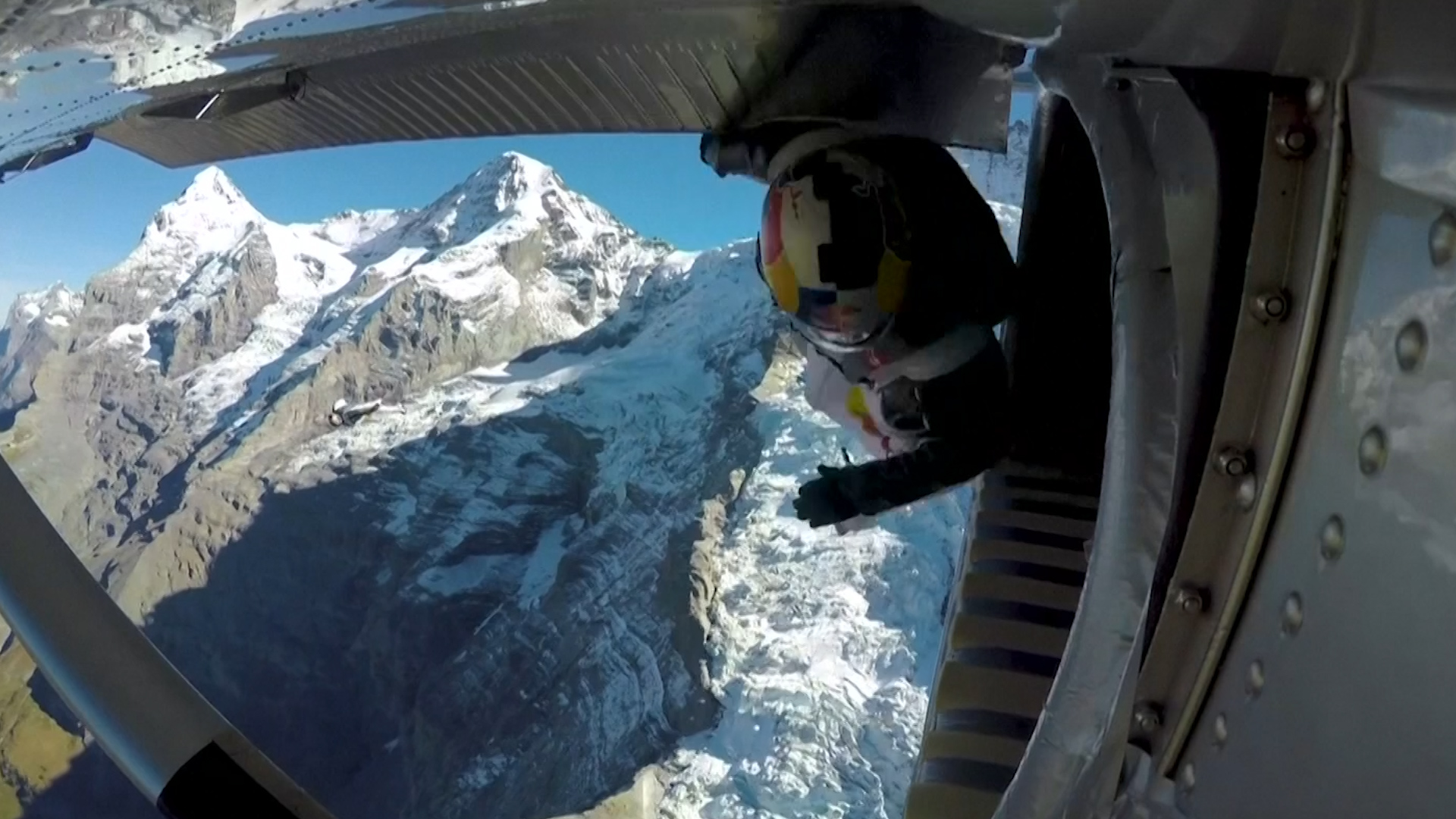 A first attempt had to be abandoned but eventually conditions were deemed perfect. The fliers prepared themselves at the top of Switzerland’s Jungfrau mountain and jumped off at Rossy’s command.