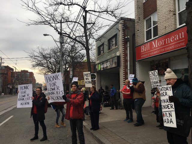 A tenants’ rights organization has held a demonstration in downtown Hamilton as part of what it’s calling a “national day of action for fair banking.”
