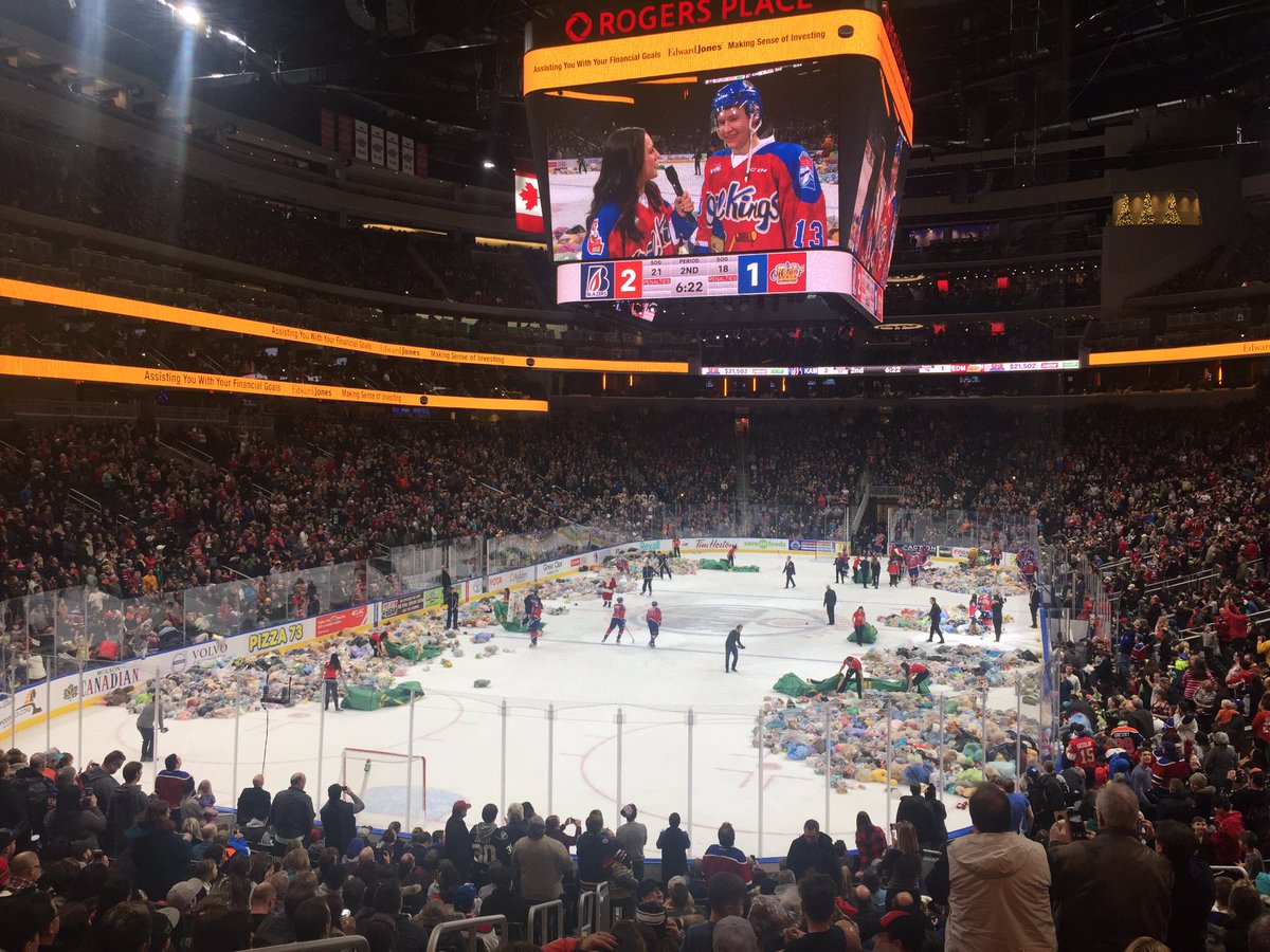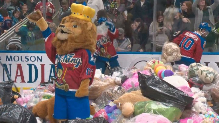 WATCH BELOW: Stuffed animals are thrown onto the ice at the 2016 Edmonton Oil Kings Teddy Bear Toss