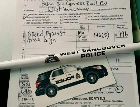 That was the case for one B.C. man who was pulled over on Sunday for travelling 96 kilometres per hour in a 60-kilometre-per-hour zone on the road to Cypress Mountain.