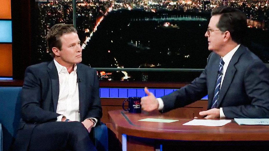 Colbert asked Bush about his decision to publish the op-ed and the timing.
