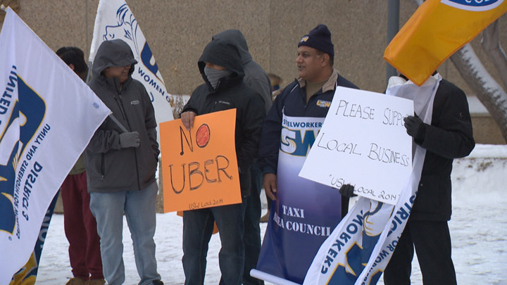 Some Saskatoon taxi drivers rallied outside of city hall on Tuesday to raise concerns about proposed ride-sharing services coming to the city.