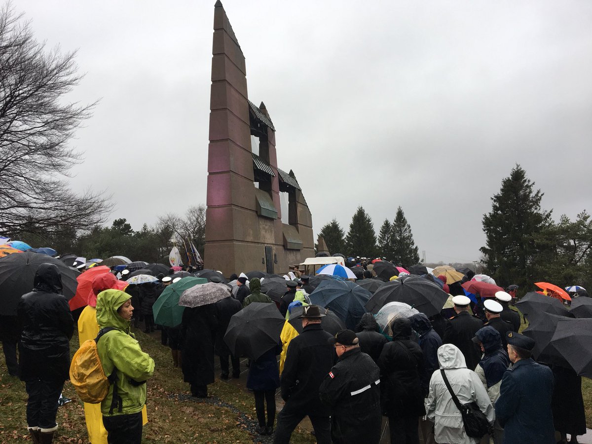 A large crowd turned out in cold rain at the Fort Needham memorial site, not far from where the French ship SS Mont-Blanc erupted and wiped out the city’s north end and a Mi’kmaq village across the harbour.