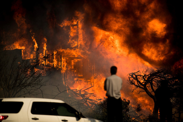 The largest and most destructive of the fires, dubbed Thomas Fire, is a massive 220-square kilometre wildfire in Ventura County northwest of Los Angeles. The blaze had nearly reached the Pacific Ocean on Tuesday night after starting about 50 kilometres inland on Monday.