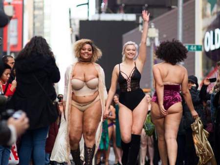 Times Square was a real scene this past Saturday. Yes, even more of a scene than usual (if you can believe it). And that’s because it was the setting for an impromptu fashion show featuring women of all sizes in lingerie.