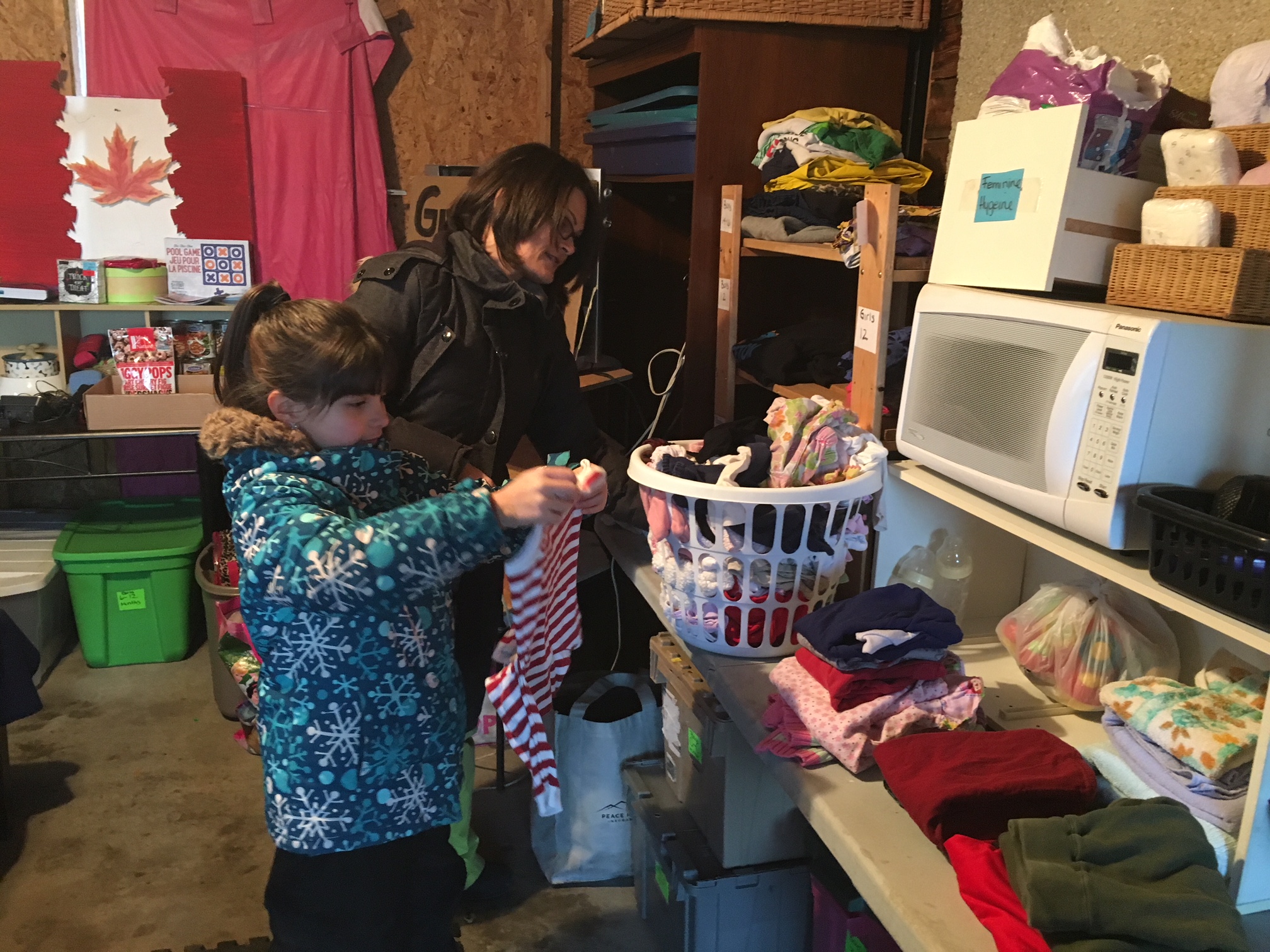 “Jackets, hats, mittens, gloves — we have lots of stuff for them, and boots,” said Sharpe’s daughter, seven-year-old Avayah Sharpe-Perrault.