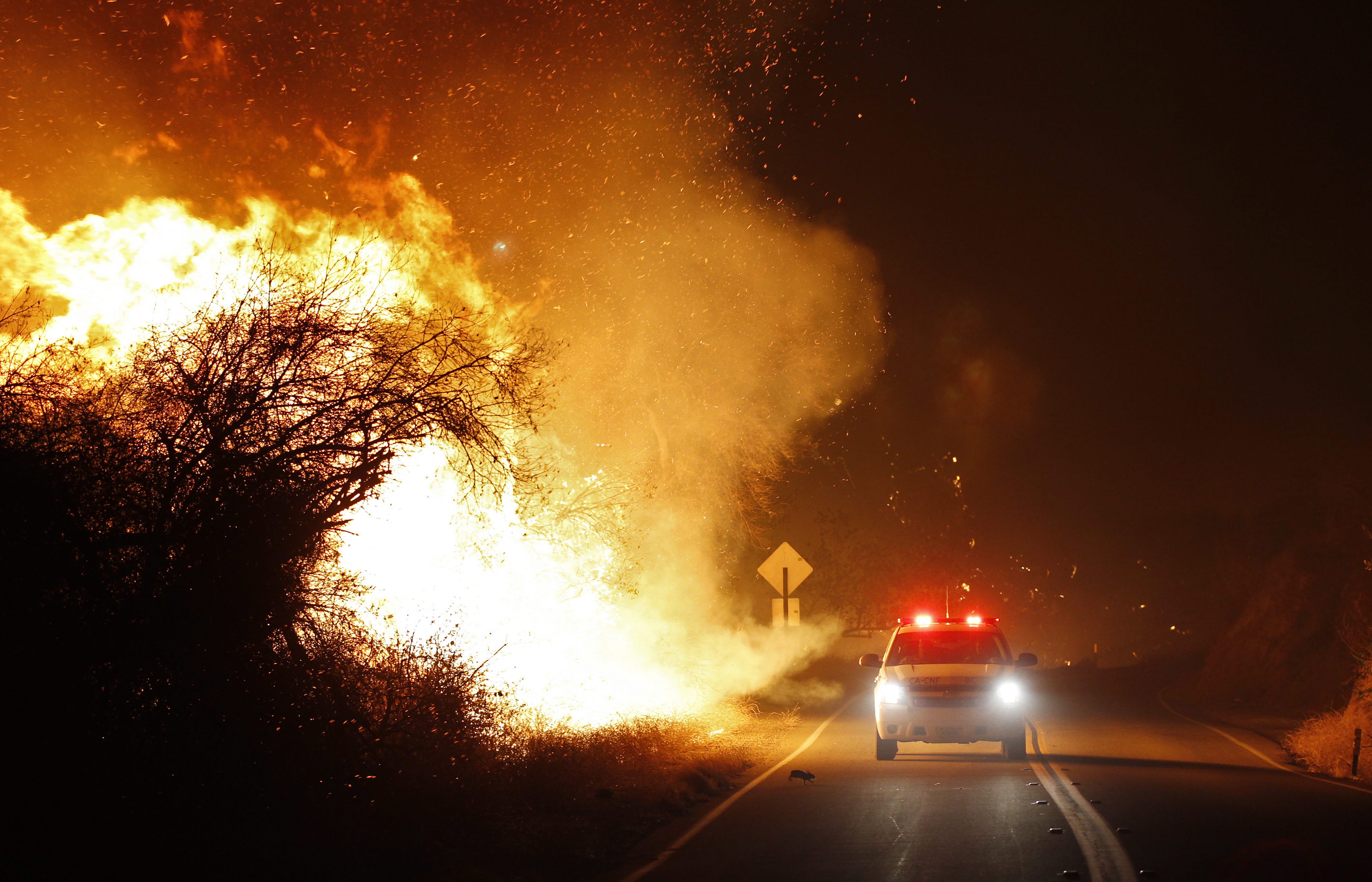 Two of the most dangerous fires, in Ventura County and San Diego County, were zero to 10 percent contained, the CAL FIRE agency reported. Billions of dollars in property is at risk.