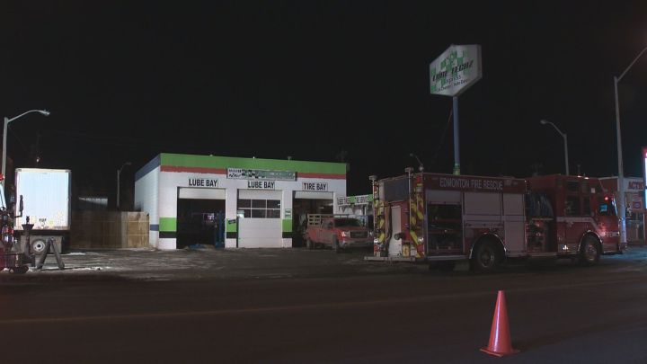 Fire officials said the fire broke out shortly before 6 p.m. at Lube Techz Edmonton Oil Change & Tire Services in the area of 159 Street and Stony Plain Road.