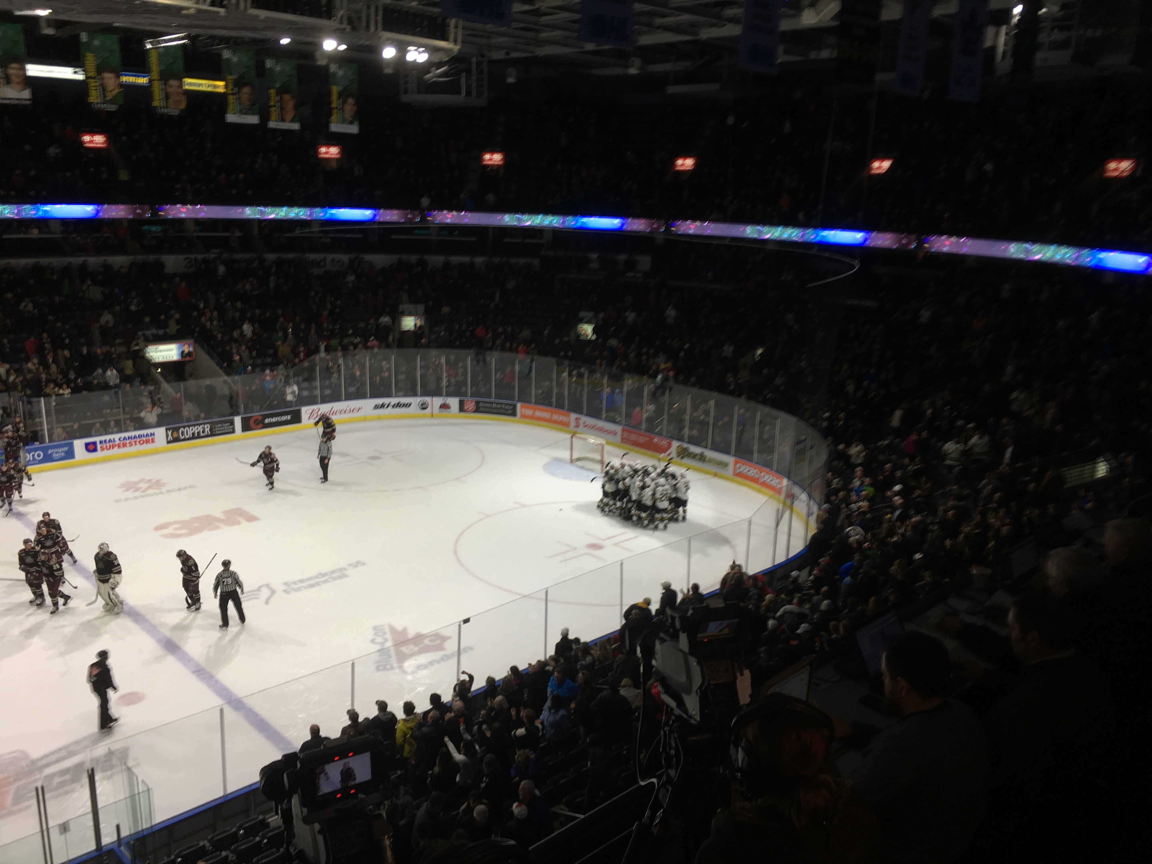 With the Knights up 3-2 and time ticking down, they looked poised to seal the game with an empty-netter, only to have play whistled down on an offside at the Peterborough blue line.