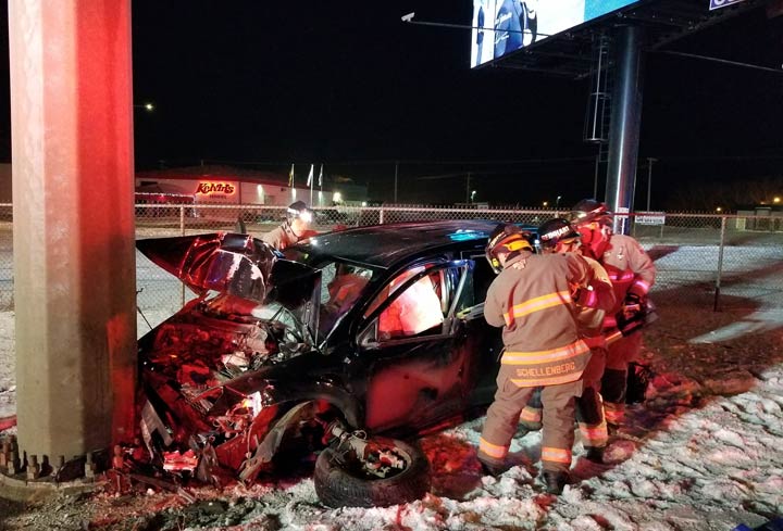 A 911 caller reported the single-vehicle collision on Circle Drive near 11th Street West at around 5:45 a.m. CT.