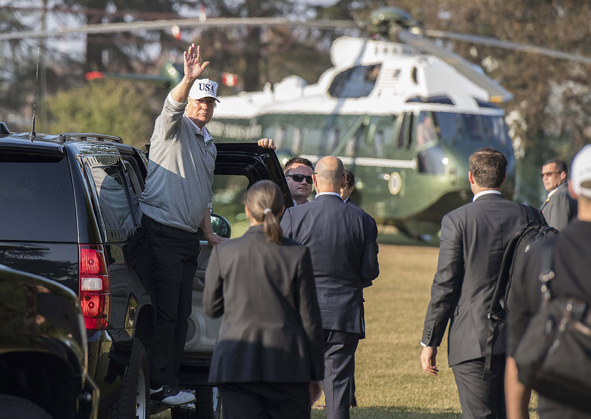 Trump spent the weekend at his Palm Beach estate. He arrived after a Friday night campaign rally in Pensacola, Florida.
