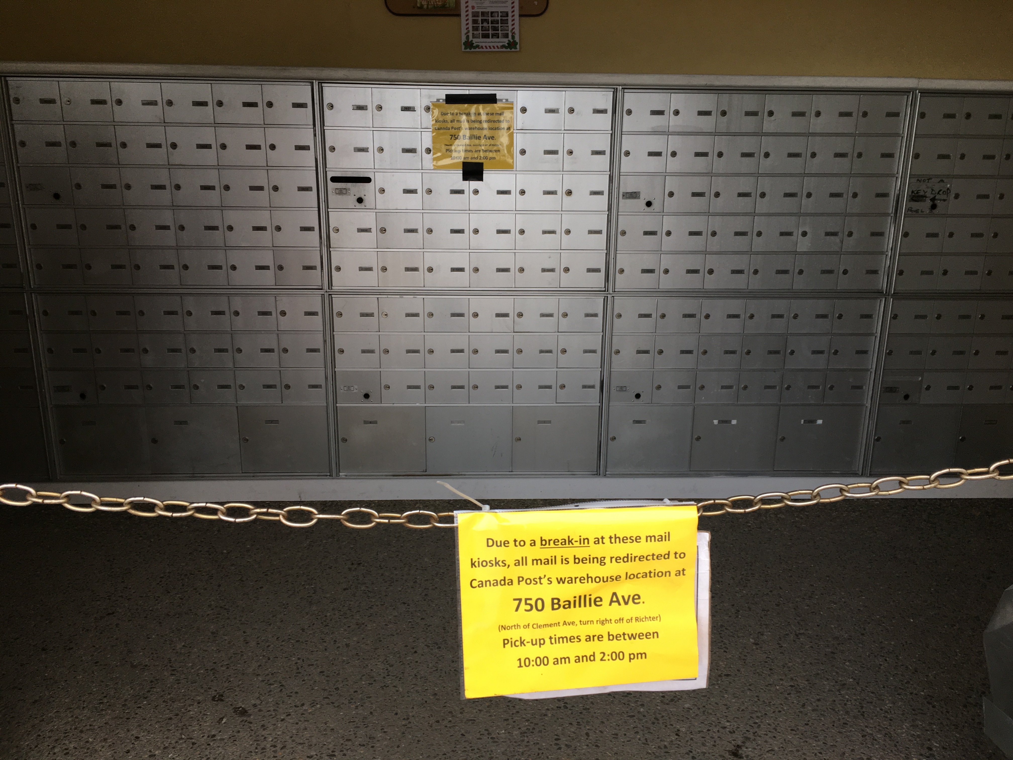 In a statement, Canada Post confirmed there was an incident at a group mailbox and apologized to customers who need to temporarily pick up their mail.