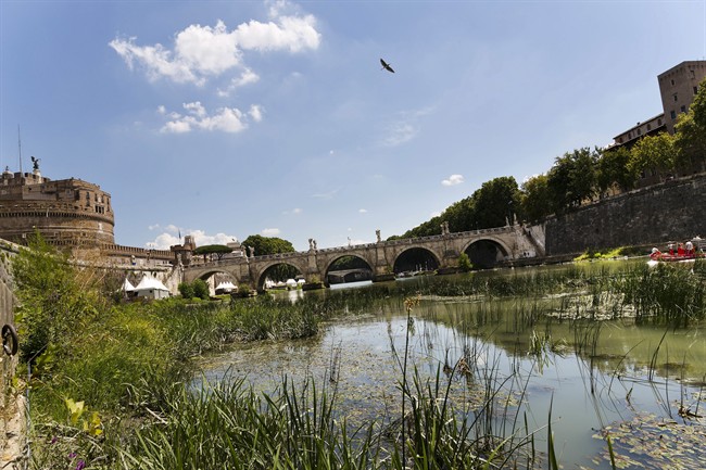 An Italian tightrope walker has inched his way across the Tiber River in Rome.