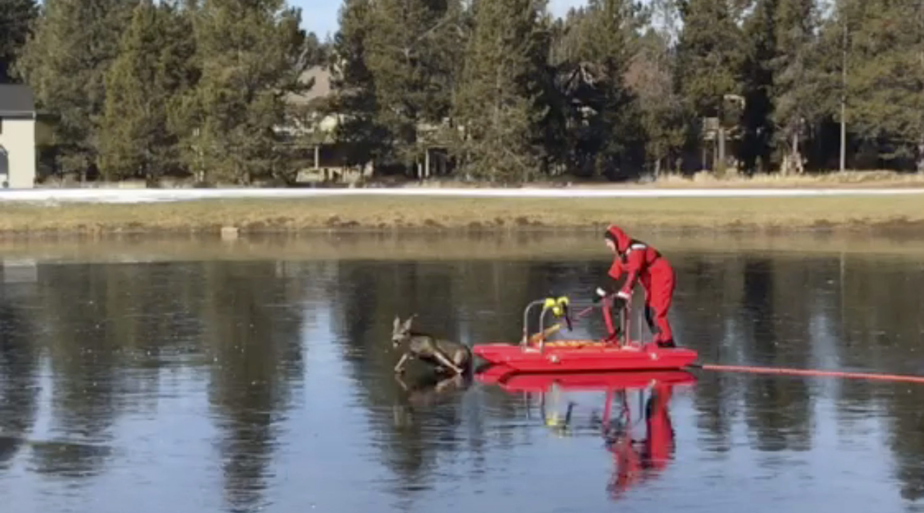 “JJ was talking to it the whole time,” said Tammie Waters, office manager for the Sunriver Fire Department. “The deer played along pretty good.”