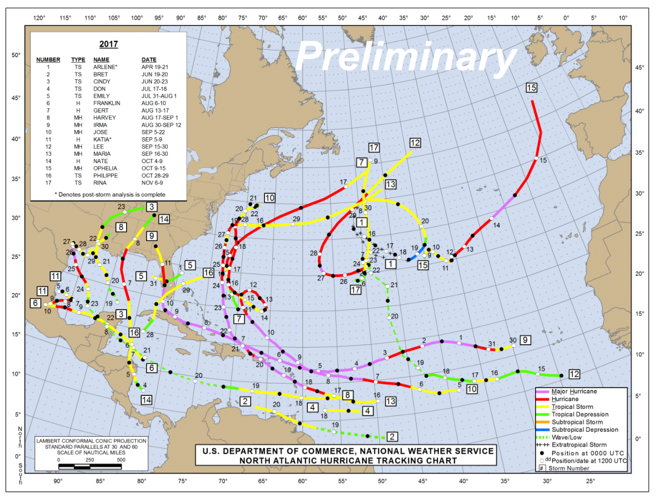 Destruction from all 17 storms contributed to a total cost of nearly US$500 billion.