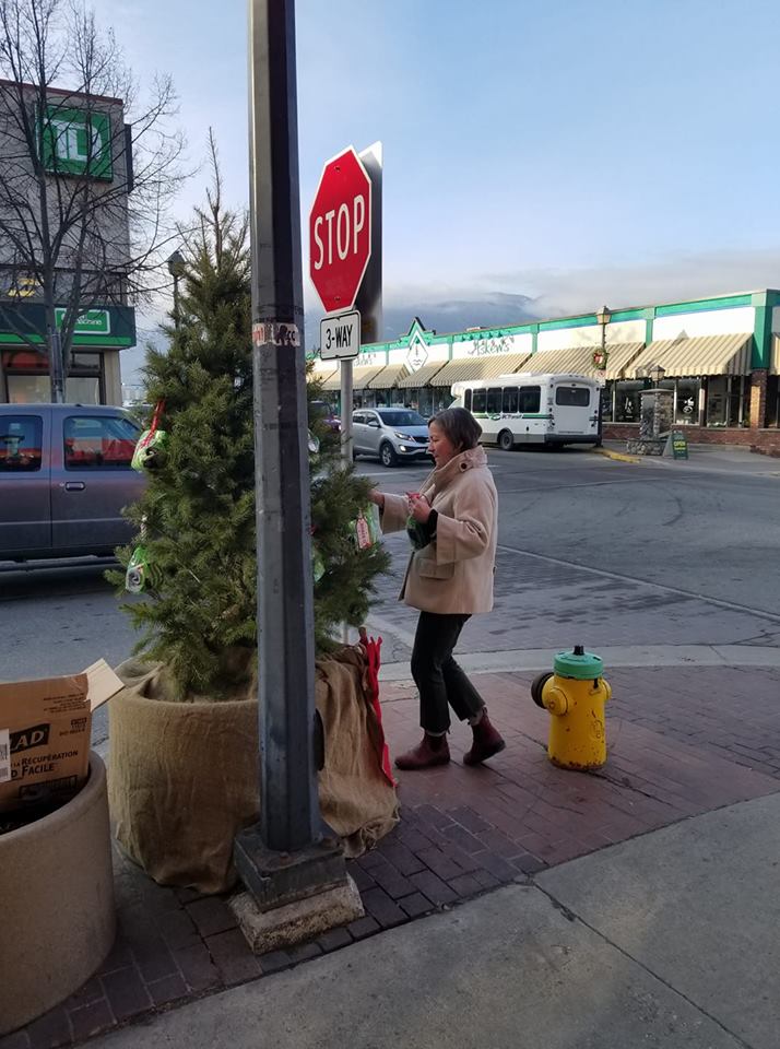 Every year businesses in downtown Salmon Arm decorate Christmas trees outside of their offices but one woman has taken the idea and created what she calls a “mini act of kindness”.