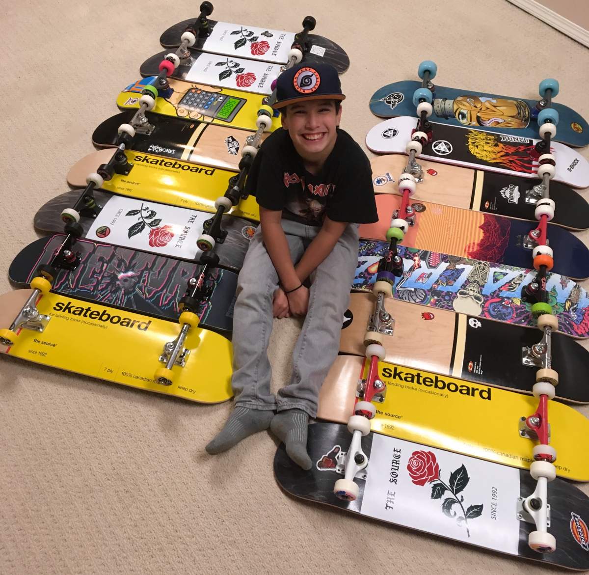 This year, 12 of the boards were donated to 630 CHED Santas Anonymous, and four of the boards will go to the Santas Anonymous program in Athabasca, Alta. The family owns a summer home there and Ethan wanted to give back because a local coffee shop donated all of their tips one night to Skateboards for Santa.