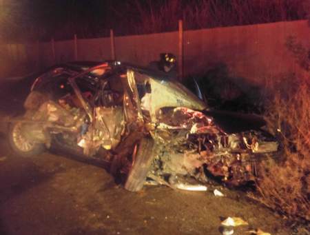 Witnesses say the vehicle struck a power pole, demolishing the vehicle, but the driver had no visible injuries.