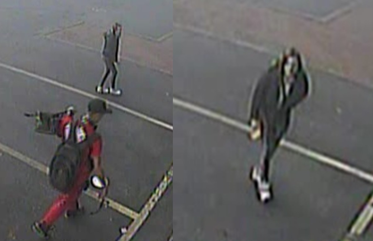 Police have release a picture of two possible suspects. The footage shows one man dressed in all red and carrying a backpack and a woman wearing dark clothing.